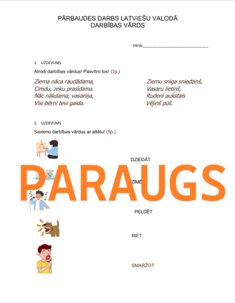 Pārbaudes darbs speciālo skolu 3.-4.klasei par darbības vārdu.