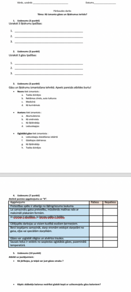 PD “Kā izmanto gāzes un šķidrumus ierīcēs ?” 7.klasei Inženierzinību priekšmetā. Pārbaudes darbā iekļauti jautājumi par gāzu un šķidrumu īpašībām.