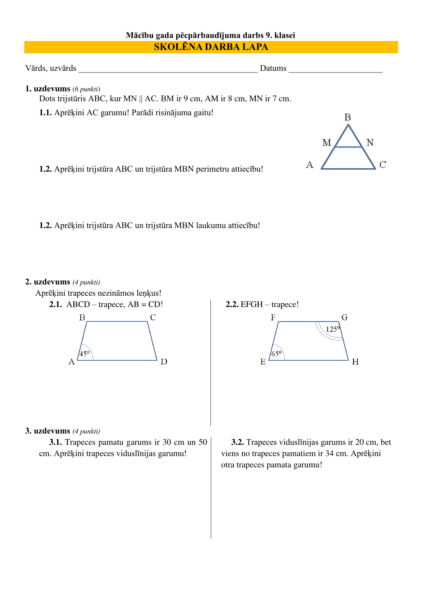 9. klase: Pēcpārbaudījuma darbs matemātikā