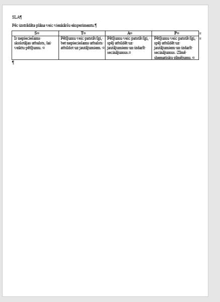 Sasniedzamais rezultāts: Pēc izstrādāta plāna veic vienkāršu eksperimentu.