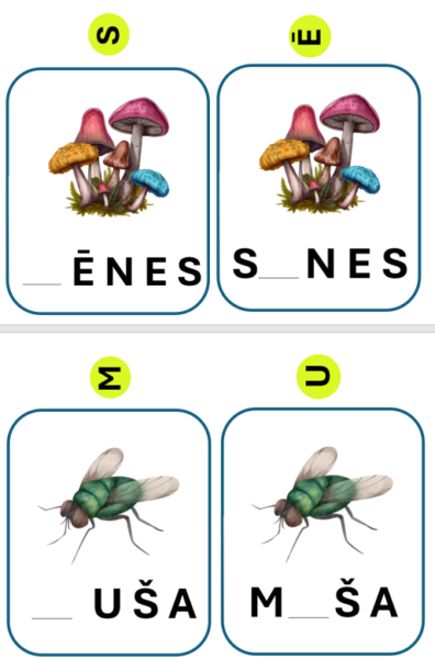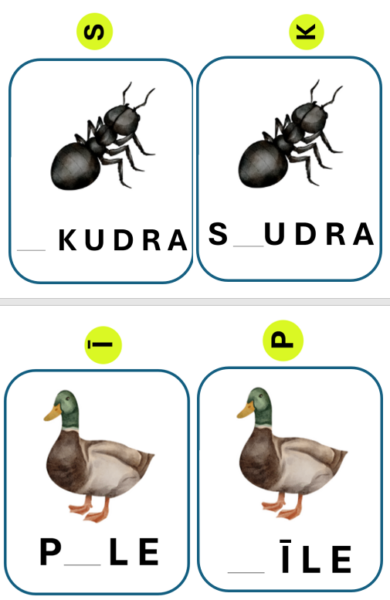 Apjoms: 60 kartītes ( 30 – pirmā skaņa, 30 – otrā skaņa).