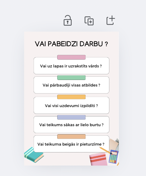 Plakāts, kas palīdzēs skolēnam pārbaudīt savu darbu