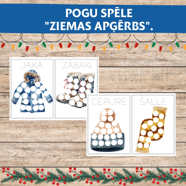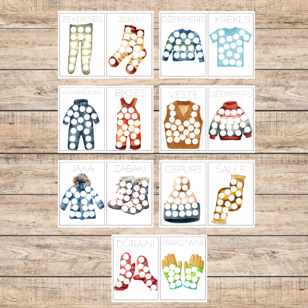 Materiāls “Pogu spēle”. 14 kartiņas. Ziemas apģerbs.