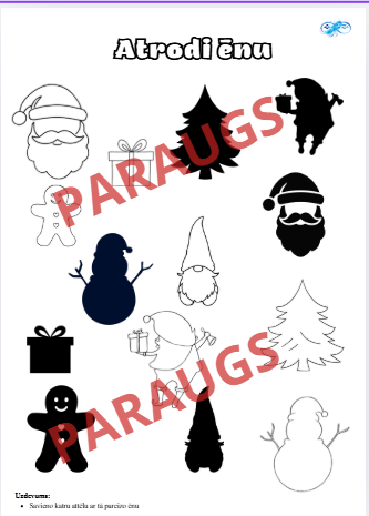 ēnu meklēšana, savienojot attēlus ar to pareizajām ēnām;