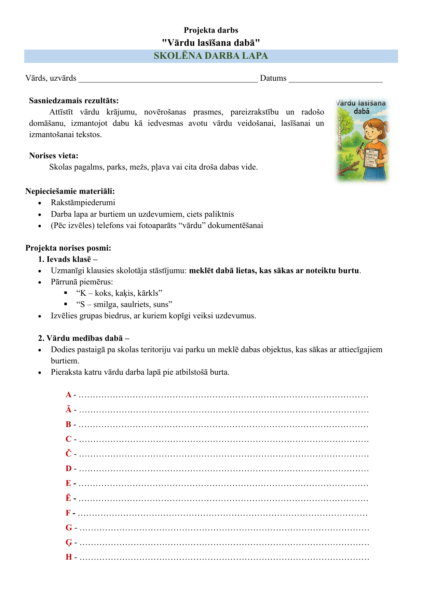 Projekta darbs “Vārdu lasīšana dabā” (1. – 3. klase)Projekta darbs “Vārdu lasīšana dabā” (1. – 3. klase)