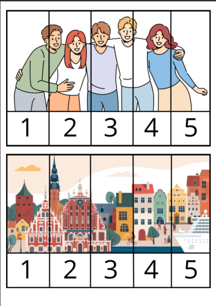 Puzles saistībā ar ģimeni, mājām, draugiem un Latviju ar cipariem 1-5.