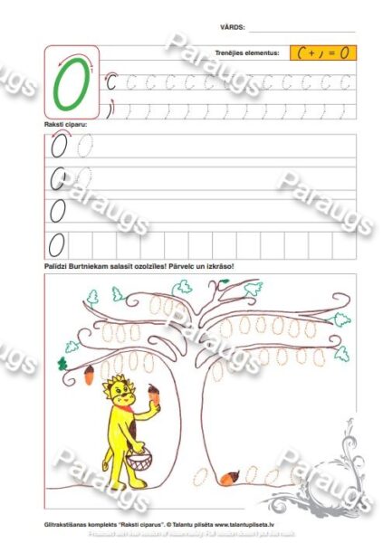 Cipari: 0, 1, 2, 3, 4, 5, 6, 7, 8, 9 un10 cipara rakstīšanai, kā arī praktisks uzdevums kopā ar Burtnieku.