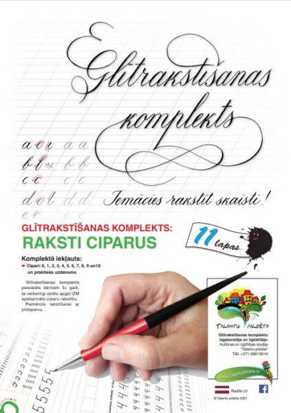 Glītrakstīšanas komplekts paredzēts bērniem 5+ gadi, lai veiksmīgi varētu apgūt IZM apstiprināto ciparu rakstību. Piemērots rakstīšanai ar parasto zīmuli vai pildspalvu