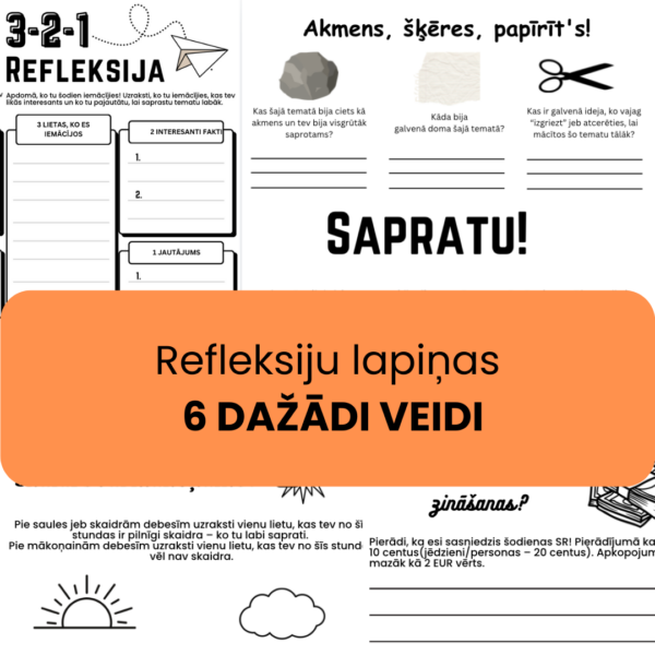 Metodiskais materiāls “Refleksijas kartītes” satur 6 dažādas radošas refleksijas aktivitātes, kas piemērotas jebkuram mācību priekšmetam. Kartītes ir paredzētas, lai palīdzētu skolēniem pārdomāt un sistematizēt stundas laikā iegūtās zināšanas, veicinot pašrefleksiju un dziļāku izpratni.