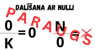 - Atgādnē ir attēlots, ka nulli dalīt drīkst un tas ir OK, bet ar nulli dalīt nedrīkst un tas ir NO.