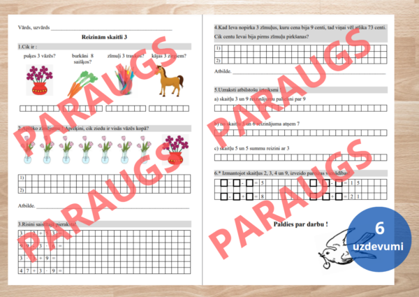 Darba lapa, lai nostiprinātu reizināšanu ar 3. Kopā 6 uzdevumi.