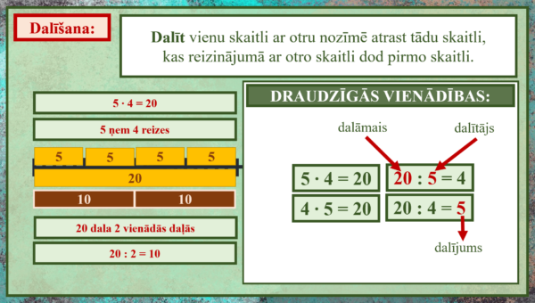 – dalīšanas darbība un tās pārbaude;