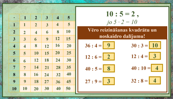 Reizināšana un dalīšana 7 apjomā – matemātika 2.klase