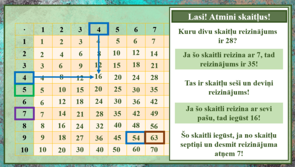 – teorijas izklāsts (reizināšana ar 6 un 7;
