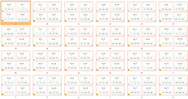 Reizināšanas tabulu kartītes. Šī aktivitāte ir jautrs veids, kā likt bērnam praktizēt reizināšanas tabulu no 2-9. Kartītes var izgriezt un ielaminēt.
