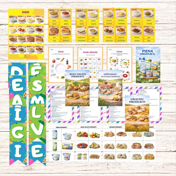 ✔ 3 ilustratīvi attēli (piemēram, maize, piena produkti)