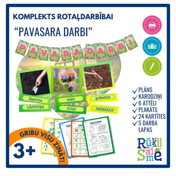Šis komplekts palīdz bērniem ne tikai iepazīt pavasara darbus, bet arī saprast pasauli caur darbību, attēlu un sarunu, kas šajā vecumā ir visefektīvākais mācīšanās veids.