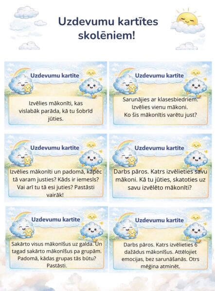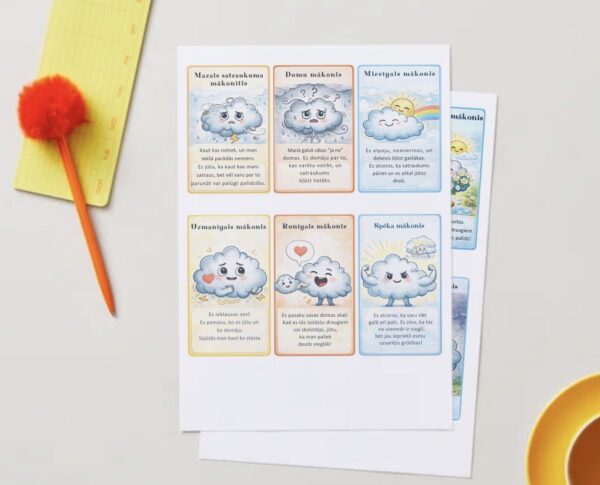 Ar mīļiem mākonīšiem, kas runā bērnam saprotamā valodā, emocijas kļūst draudzīgas, nevis biedējošas ☁️🌈
