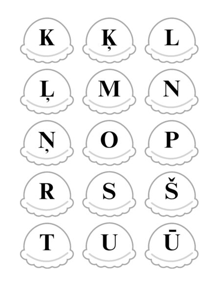 33 saldējuma bumbiņas ar alfabēta lielajiem, iespiestajiem burtiem