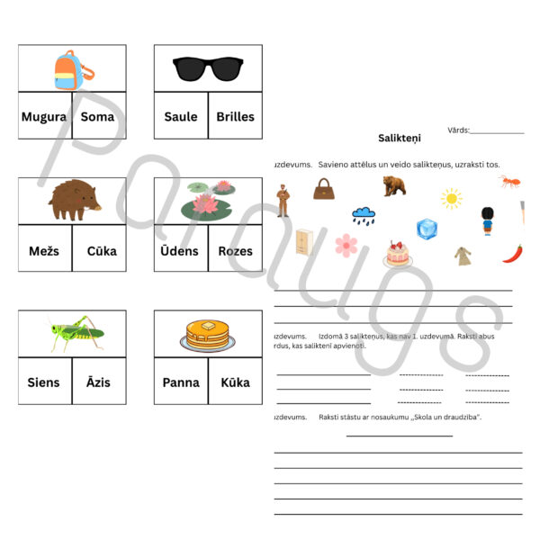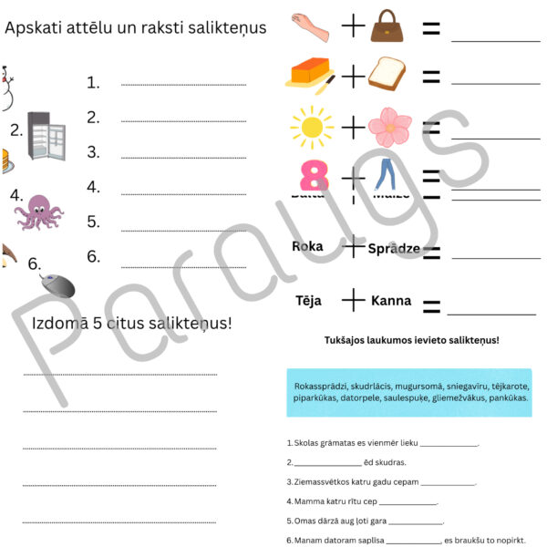 10 darba lapas par salikteņiem. Darba lapas ir dažādas un bērniem ieinteresējošas.