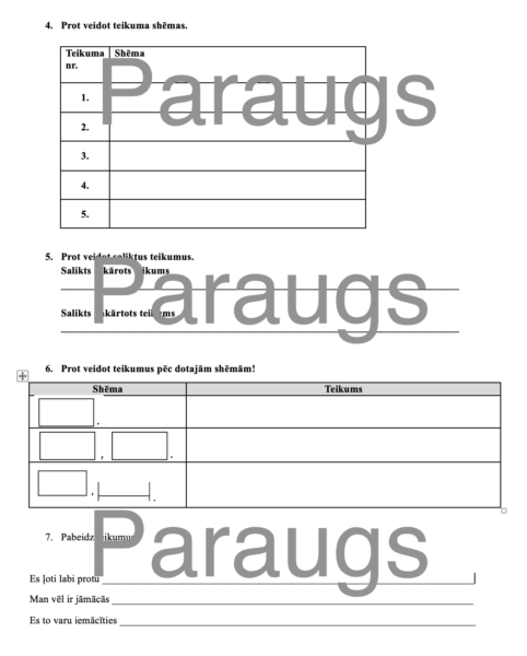 Prot veidot teikumus pēc dotajām shēmām.