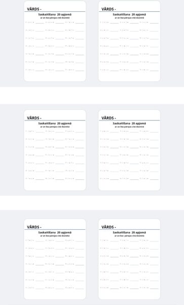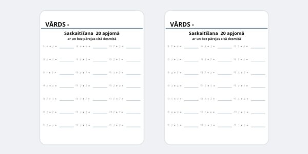 Saskaitīšana 20 apjomā – miksētas darba lapas- ar un bez pārejas citā desmitā.