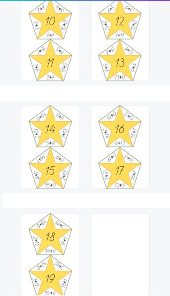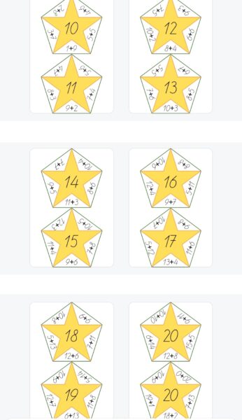 Saskaitīšana 20 apjomā – zvaigznesSaskaitīšana 20 apjomā – zvaigznes
