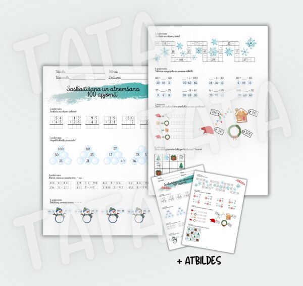 Saskaitīšana un atņemšana 100 apjomā | ZiemaSaskaitīšana un atņemšana 100 apjomā | Ziema
