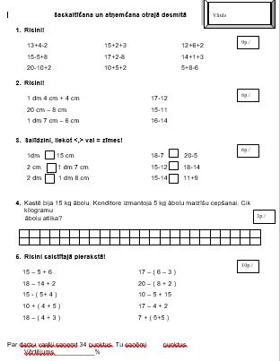 Uzraksti atsauksmi pirmais par “Saskaitīšana un atņemšana otrajā desmitā”