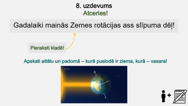 -Skolēns zina, kas izraisa gadalaiku maiņu.