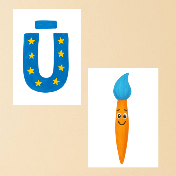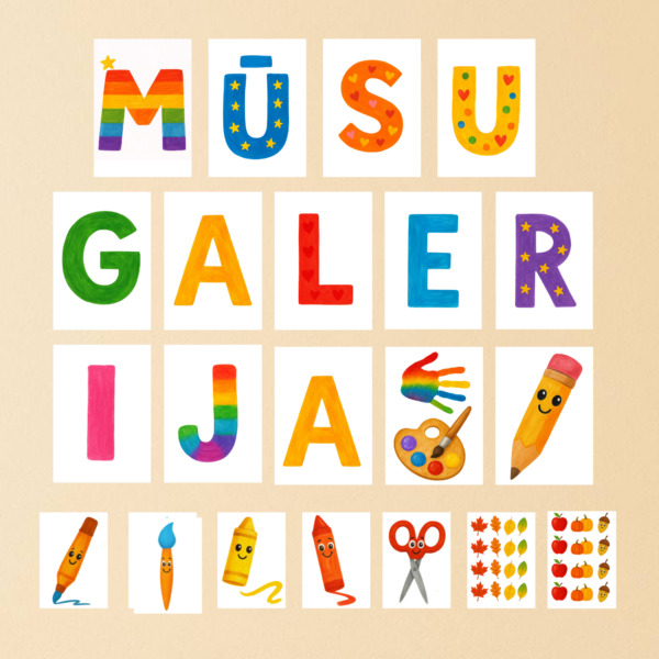 • Krāsainie burti “MŪSU GALERIJA” (katrs burts uz atsevišķas A4 lapas).