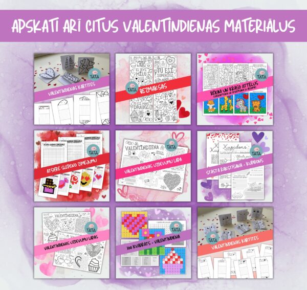 💡Šis ir digitāls materiāls (PDF formātā), kuru vari izprintēt pats! Materiāls veidots Valentīndienas tematikā.