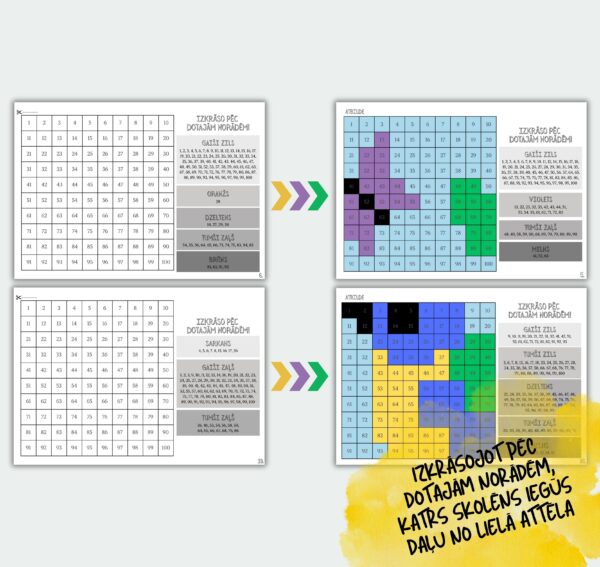 📌 Materiālā ietilpst 30 izkrāsojami simta kvadrāti