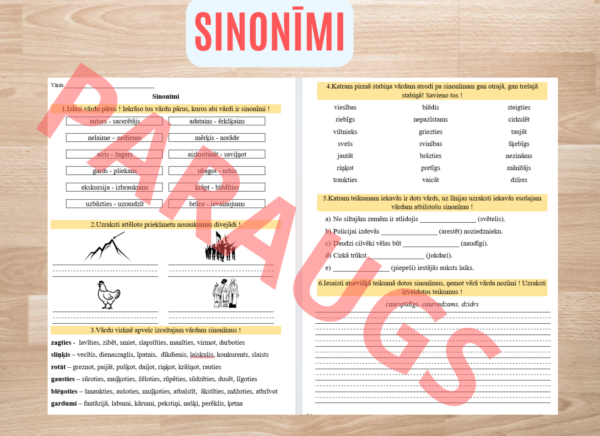- Iesaisti atsevišķā teikumā dotos sinonīmus, ņemot vērā vārda nozīmi ! Uzraksti izveidotos teikumus !