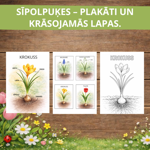 Sīpolpuķes – plakāti un krāsojamās lapas.