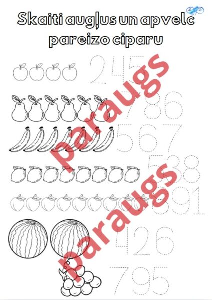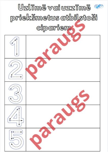 - Uzlīmē vai uzzīmē priekšmetus atbilstoši cipariem
