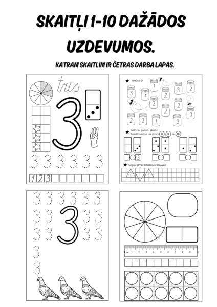 Skaitļi 1-10 dažādos uzdevumos.
