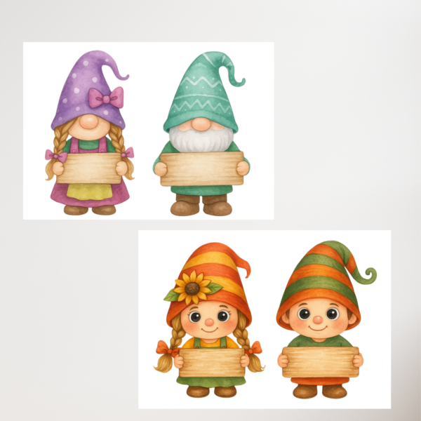 Materiāls: Rūķu tematikas ilustrācija ar tukšu vietu bērna vārdam.