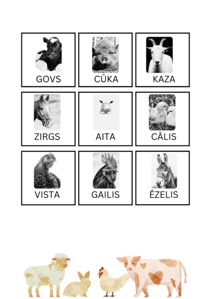 SPĒLE “LOTTO – MĀJDZĪVNIEKI”,PAREDZĒTA  BĒRNIEM, LAI  VARĒTU  MĀCĪTIES KĀDI DZĪVNIEKI MITINĀS LAUKU SĒTĀ!