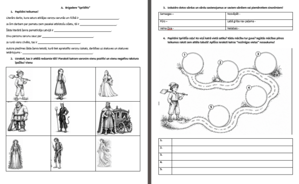 Iekļauti uzdevumu – jēdzienu atkārtošanai, kas saistīti ar pasaku lugu.