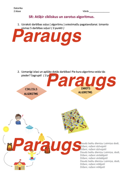 Datorika. 2.klase (SR: 2.4. Atšķir cikliskus un zarotus algoritmus.)