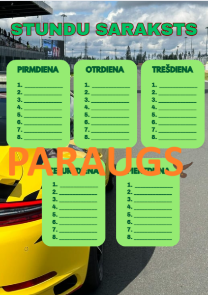 Mācību stundu saraksts. Printējams A3, A4, A5 formātos.