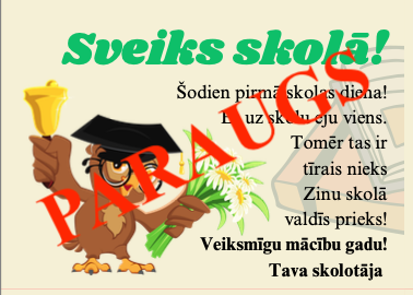 Uzraksti atsauksmi pirmais par “Kartītes “Sveiks skolā!”. Zinību diena, 1.septembris.”