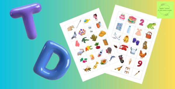 Materiālā ietilpst T un D burta attēls (1 A4 lapa) un 48 attēlu kartiņas (2 A4 lapas).