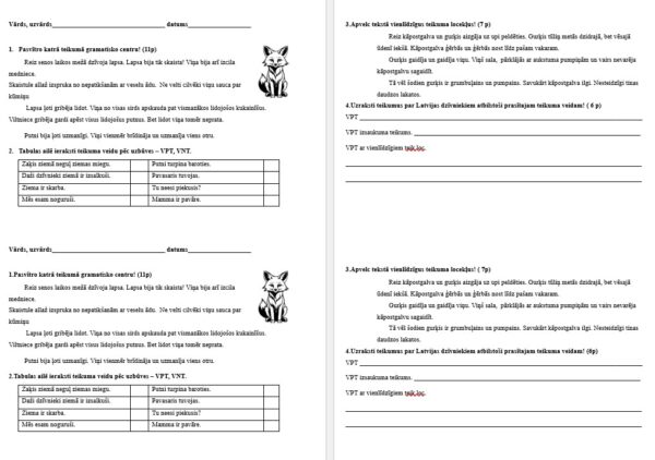 Īss 4.uzdevumu formatīvais darbs 4.klasei par teikumu.