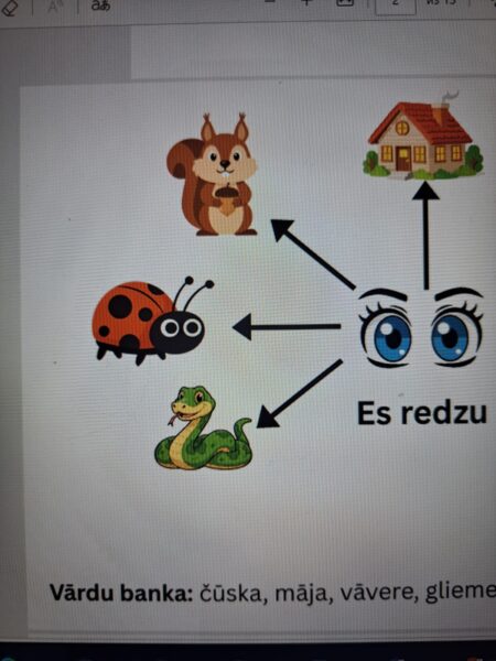 Spēle “Teikumu “ES redzu” konstruktors ir vienkāršs un aizraujošs mācību materiāls bērniem, kas palīdz apgūt jaunus vārdus latviešu valodā un attīstīt pareizu izrunu. Spēles laikā bērni veido teikumus, izmantojot frāzi “es redzu”, papildinot to ar dažādiem attēliem vai vārdiem. Tā veicina valodas attīstību, paplašina vārdu krājumu un trenē runas prasmes rotaļīgā veidā.