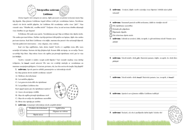 Tekstpratības uzdevumi. Lieldienas.