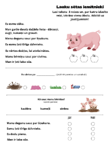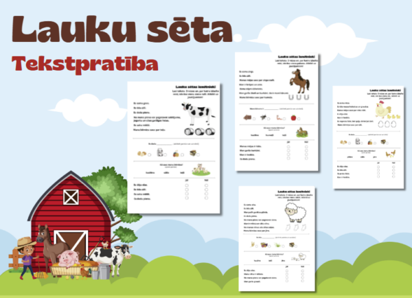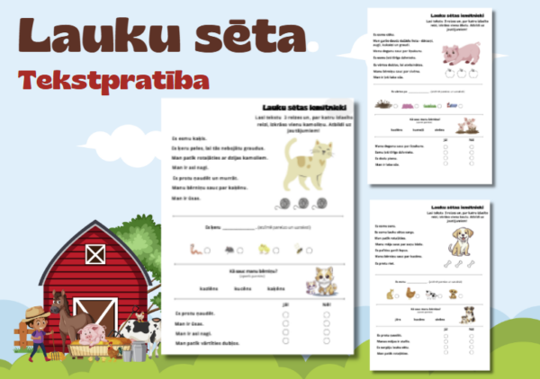 Mācību materiālā iekļautas 7 darba lapas lasītprasmes un tekstpratības pilnveidošanai tēmā “Lauku sētas iemītnieki”