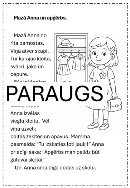 • 1. līmenis: pavisam īss teksts par apģērbu.
