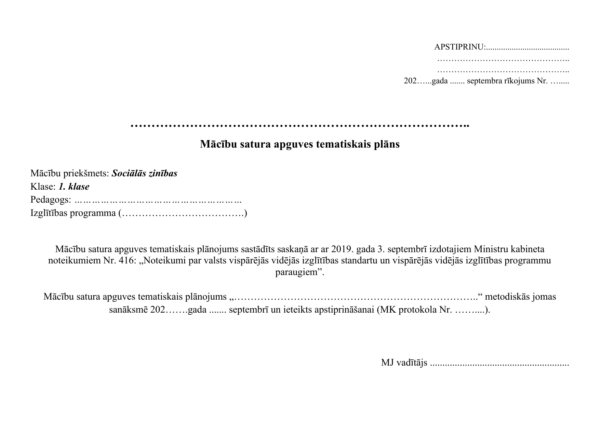 Tematiskais plānojums sociālajās zinībās 1. klasei